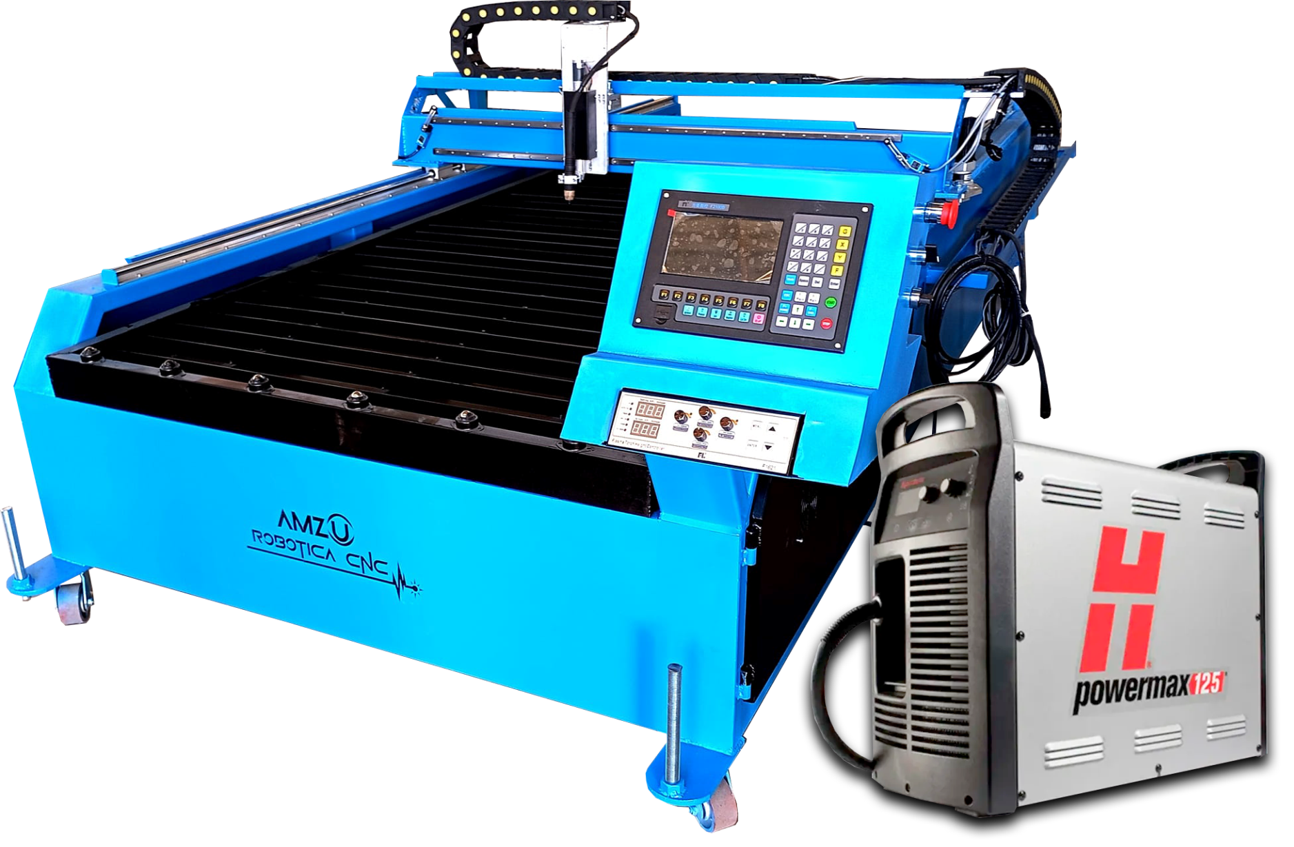 Esta maquina cuenta con capacidad de 4 pies x 10 pies x 8 pies de alto, y contamos con el cortador de plasma de 125 Amp. que nos da la capacidad de corte desde calibre 20 hasta 1" de espesor. Con el equipo de Oxico