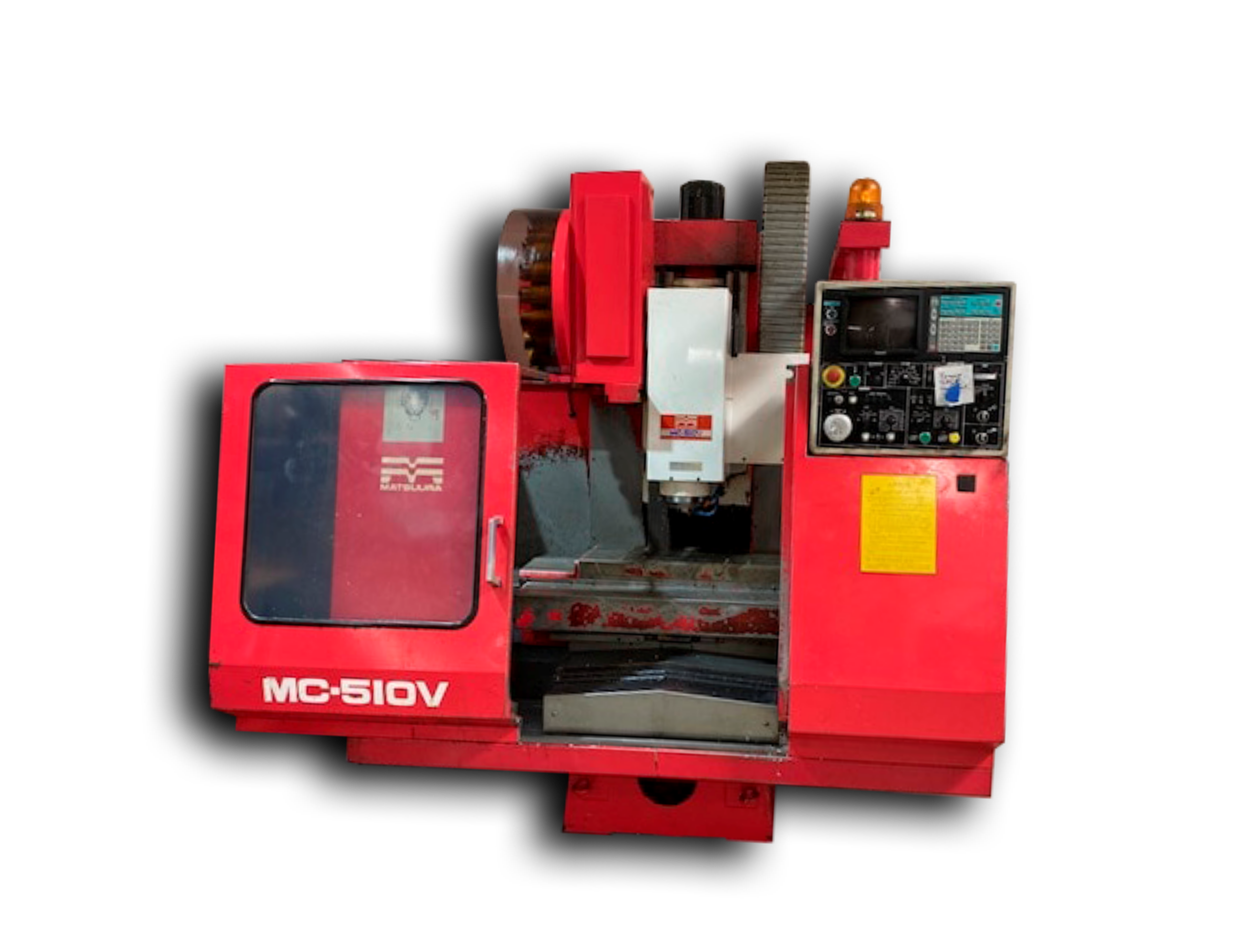 Centro de mecanizado vertical, control CNC Yasnac Mx3, mesa de trabajo con ranuras en T de 14.96" x 29.9", cambiador de herramientas de brazo doble de montaje lateral de 20 estaciones, eje cónico BT-35 de 6000 RPM máx.,